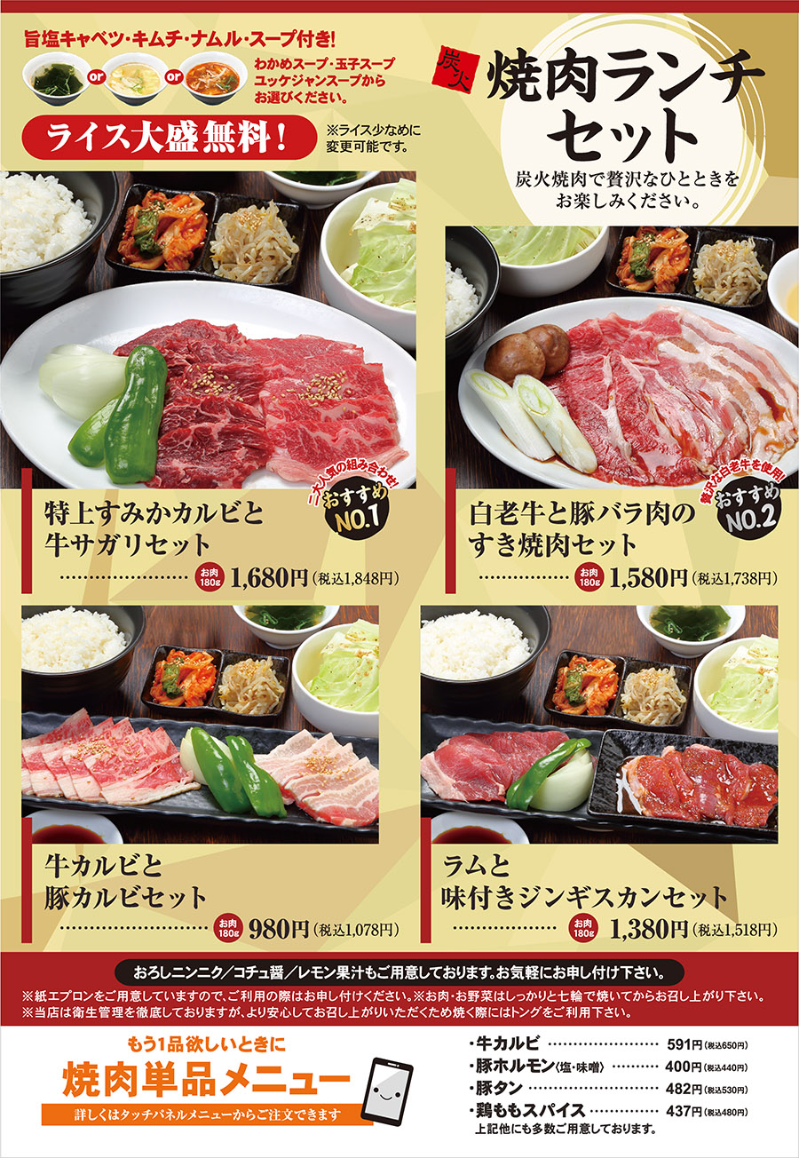 週末のお昼は、手軽に焼肉をお楽しみください!
