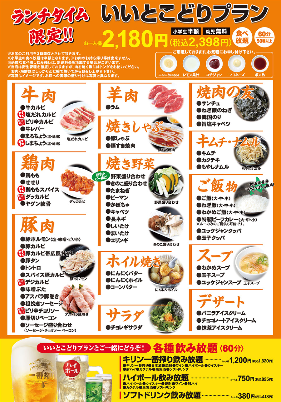 もちろん焼肉食べ放題メニューもご注文いただけます。