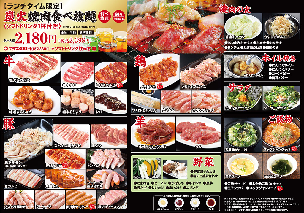 もちろん焼肉食べ放題メニューもご注文いただけます。