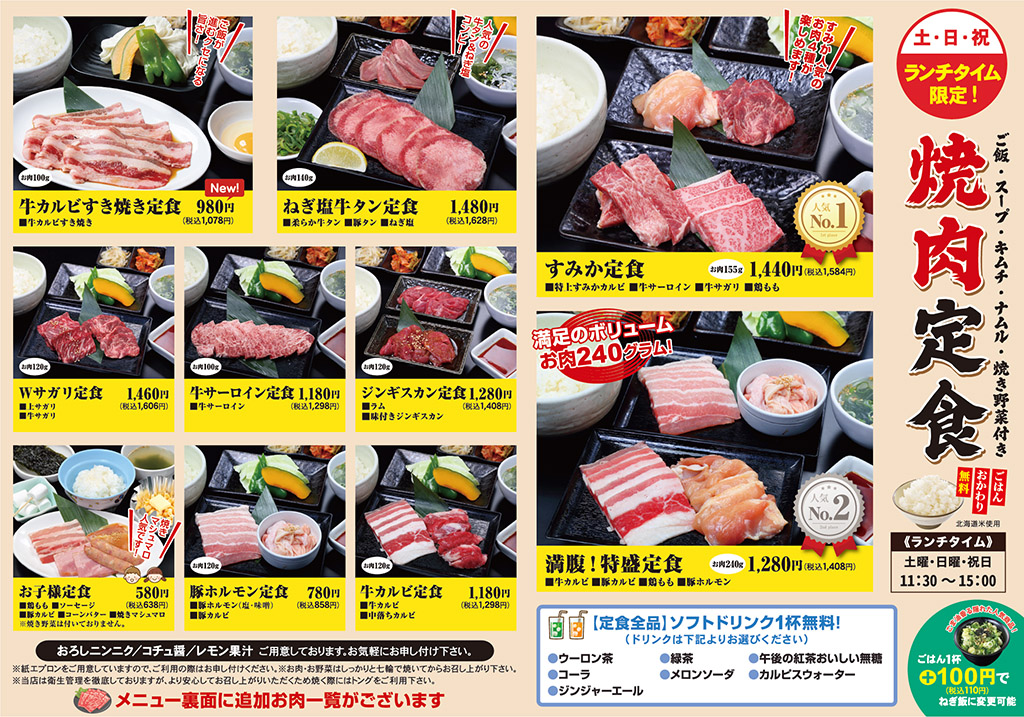 週末のお昼は、手軽に焼肉をお楽しみください!