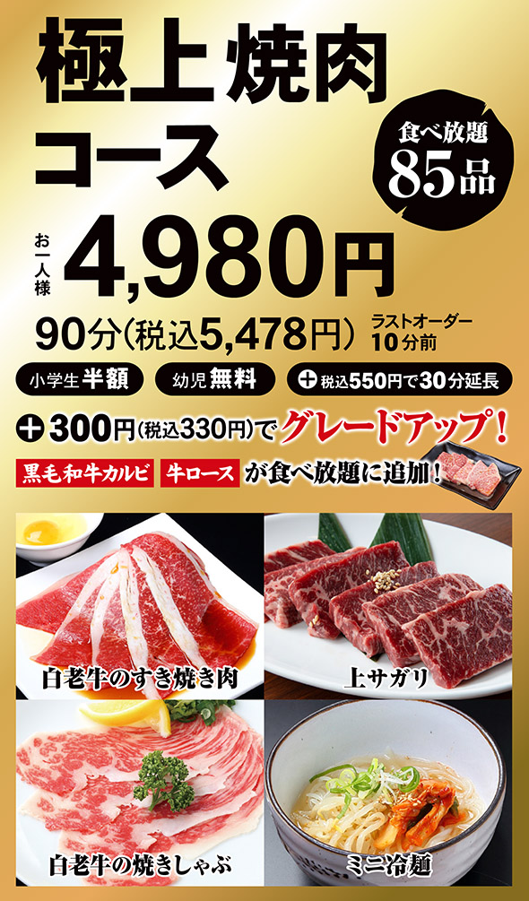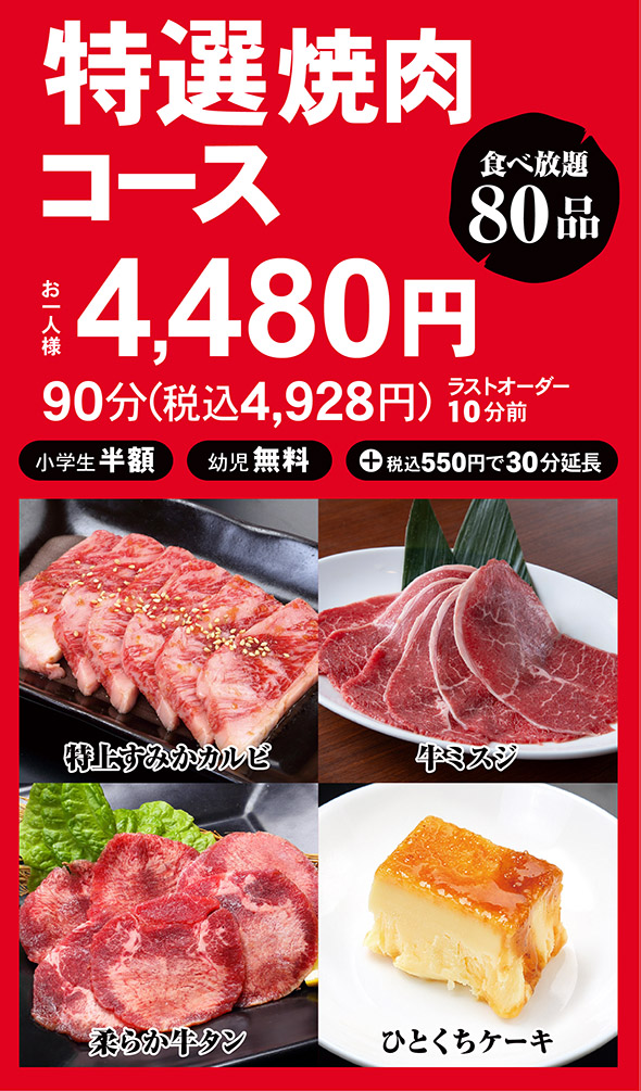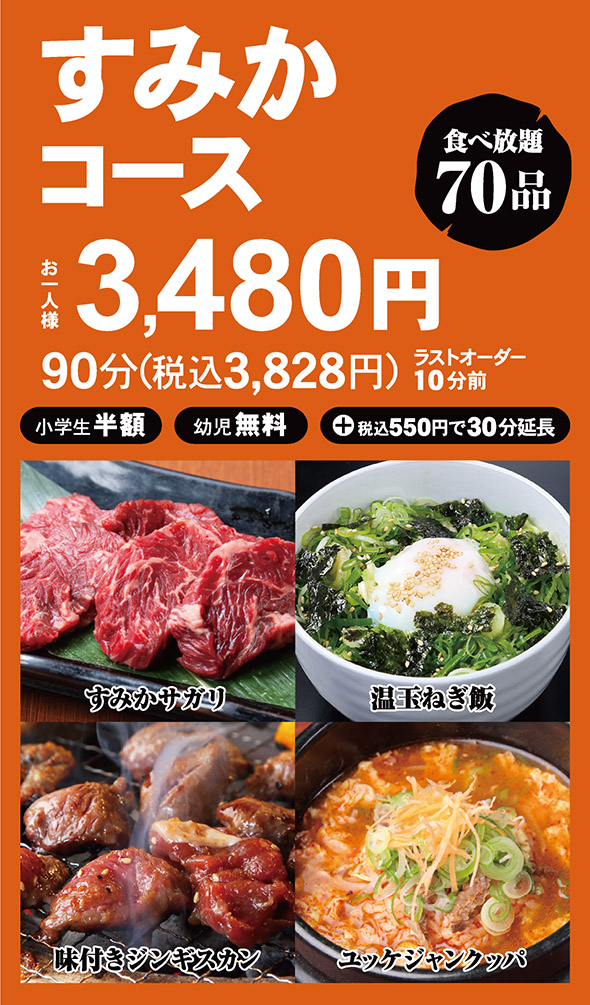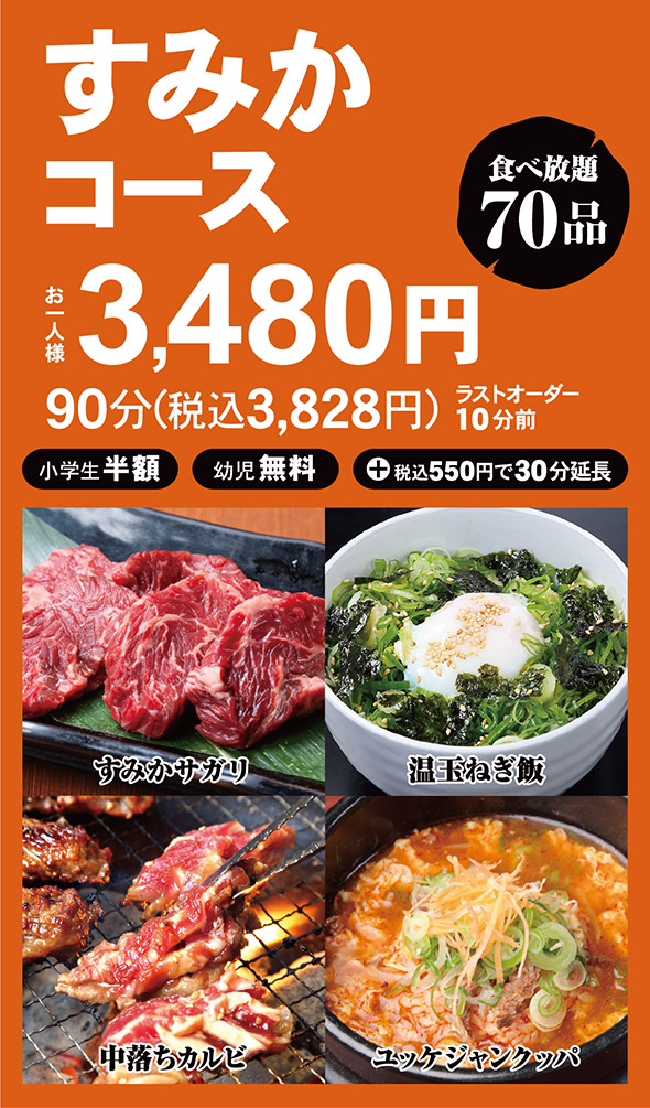 焼肉ダイニングすみかでは、焼肉食べ放題を各種ご用意しております。ご家族でのお食事やお友達との集まり、ご宴会、記念日など、日常から特別な日までシーンに合わせてご利用ください!※食べ放題内容は店舗により一部異なりますので予めご了承下さい。