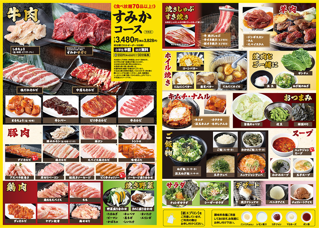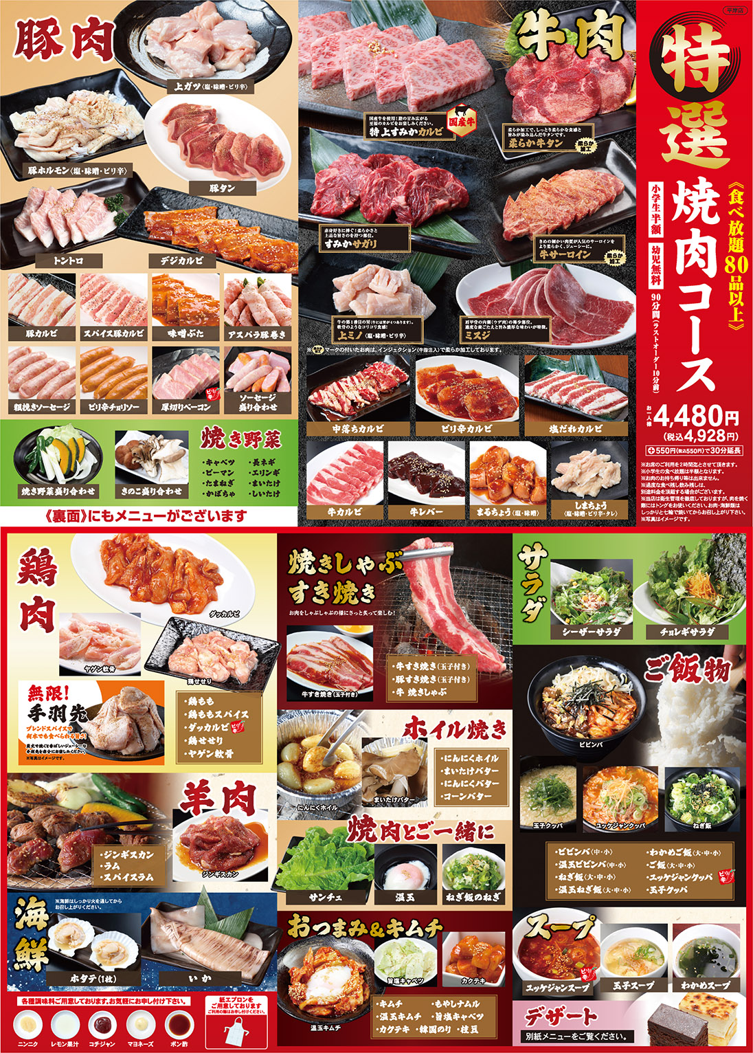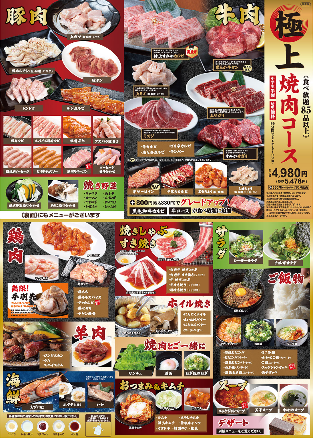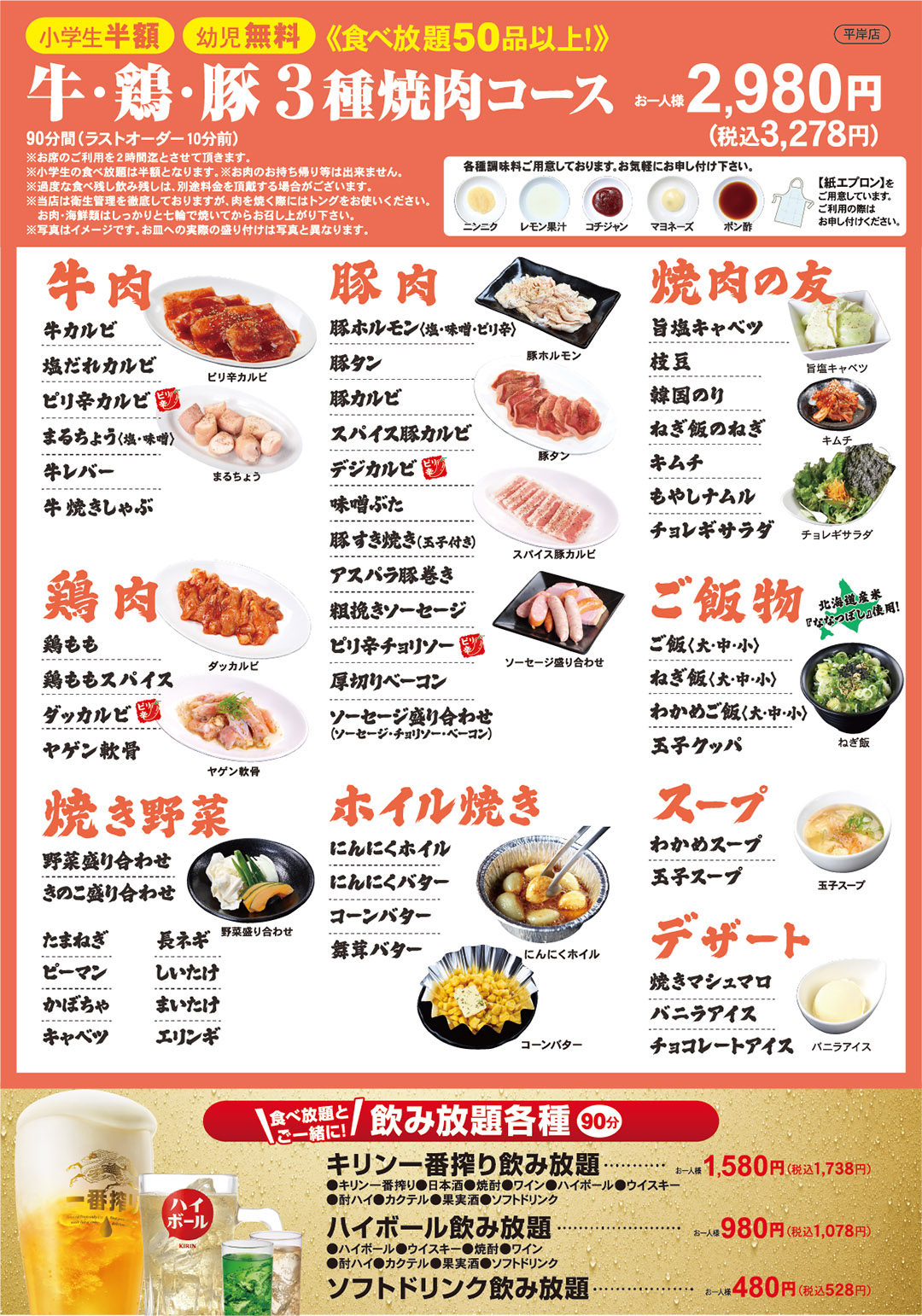 〈平岸店〉 牛・鶏・豚3種焼肉コース・90分